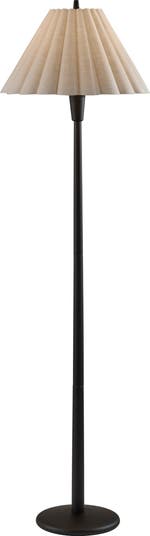 The rounded edges of the base echo the scalloped fabric shade of this floor lamp that warmly illuminates your space with a modern, classic style.
