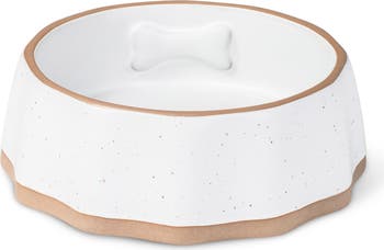 A raised bone hints at the tasty meal that awaits your pup in this stoneware bowl with a speckled glaze and scalloped design that complement your home's elegant decor.