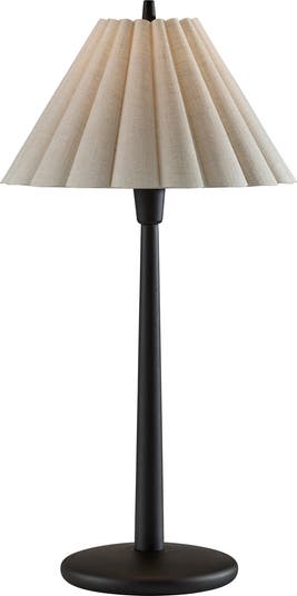 The rounded edges of the base echo the scalloped fabric shade of this lamp that warmly illuminates your space with a modern, classic style.