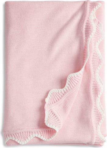 Knit from plush cotton and framed with sweetly scalloped trim, this snuggly-soft blanket is a charming gift that'll be loved for naps, tummy time or on-the-go stroller adventures.