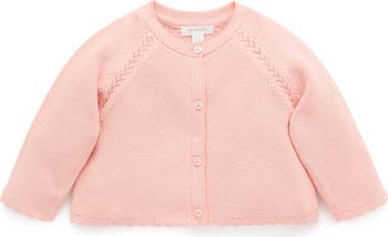 Our Scalloped Cardigan is the perfect layering piece to add to her transeasonal wardrobe. Lovely and soft, designed with a sweet scalloped hem. Made from 100% Cotton, layer over our dresses or rompers for a cute outfit.