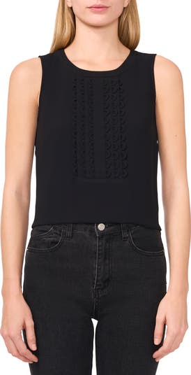Scallop-trim pintuck pleats detail the front of this gauzy georgette top cut in a sleeveless silhouette and perfect for casual days, the workplace and beyond.