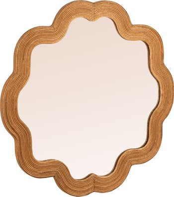 Enhance your space with the natural beauty of this Scalloped Rattan Framed Wall Mirror. The elegant scalloped shape of the frame adds a touch of softness to the design, while the woven rattan brings a warm, organic feel. Perfect for adding texture and visual interest, this mirror complements a variety of interior styles, from coastal to bohemian. Whether placed in an entryway, bedroom, or living room, this mirror reflects light beautifully, making any room feel brighter and more spacious.