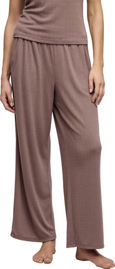 Dainty scallops frame the pockets of these mid-rise lounge pants made from a soft pointelle knit in a flowy wide-leg silhouette.