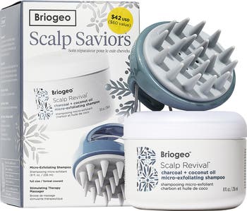 - Scalp Revival Charcoal + Coconut Oil Micro-Exfoliating Shampoo (8 oz.): a unique charcoal and coconut oil–infused scalp shampoo that detoxifies, exfoliates, soothes and balances the scalp for optimal health
