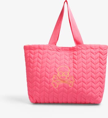 Synthetic bag with quilted effect with contrasting embroidered front skull and double handle