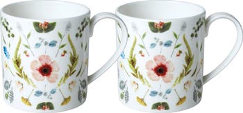 Scandinavian Floral Set of Two Mugs