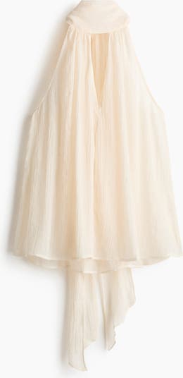 Loose-fit top in sheer, crinkled chiffon featuring a narrow cut at the top, a gathered scarf collar and V-shaped openings at the front and back. Unlined.