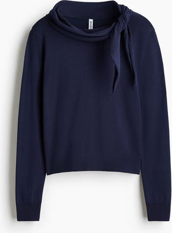 Fitted jumper in a fine-knit viscose blend featuring a scarf collar and ribbing at the cuffs and hem.