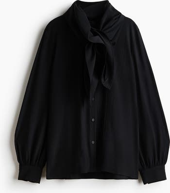 Shirt in woven fabric with a band collar, buttons down the front and a detachable scarf that is fastened with buttons at the back of the neck. Long sleeves with buttoned cuffs and a straight-cut hem.