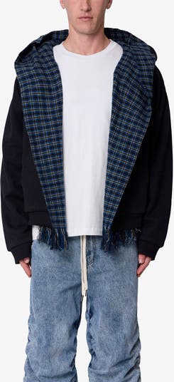 An attached fringed flannel scarf adds cozy warmth to this zip hoodie cut from garment-dyed cotton fleece with an enzyme wash that brings up a soft, textured finish.