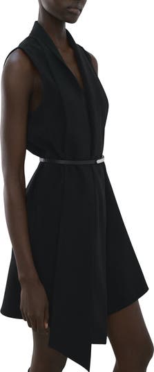 A flourishing scarf detail dials up the drama for a staple minidress cinched with a slim faux leather belt.