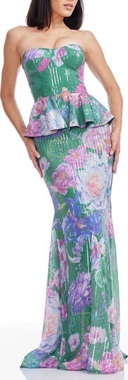 Scarlett Sequin Floral Embroidered Peplum Mermaid Gown