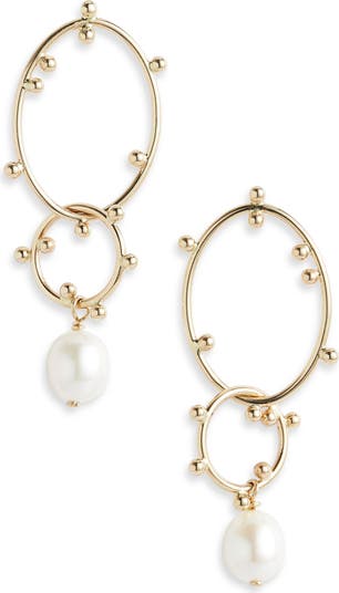 Polished beads bubble over these modern drop earrings anchored with milky cultured pearls.