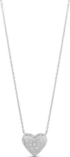 Welcome shimmering romance to your look with this puffy heart pendant necklace dazzling with scattered crystals.