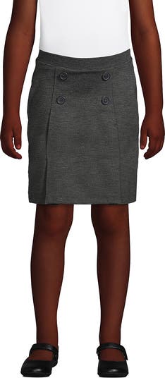 Styled with four neat buttons, this skort is made from ponté, a soft knit fabric that drapes beautifully. So she looks neat all school day long. Attached knit shorts provide coverage.