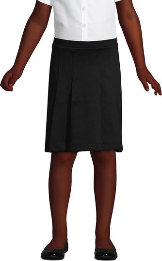 A dressy pleated skirt made from ponté, a soft knit fabric that drapes beautifully. So she looks neat all school day long.