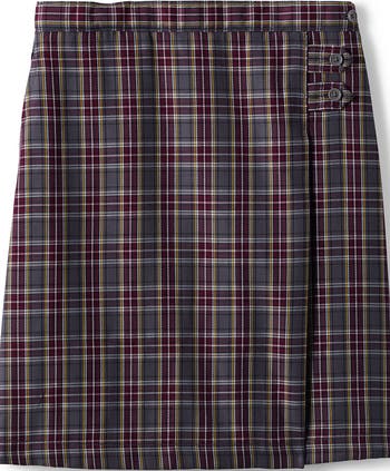 The ultimate classic — a Plaid A-line Skirt — it's an integral part of the timeless school wardrobe. But you'd be hard pressed to find another with the easygoing comfort of this one. Not only does the smooth polyester/rayon blend drape elegantly, but it also resists wrinkles to keep you looking neat and poised from first class to last bell (and all your activities in between). Button/zip closure at side seam. One right onseam pocket. Below-the-kneelength.