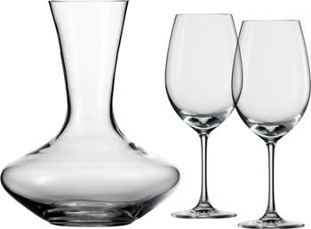 - Decanter holds 25.3 oz.; glasses hold 17.1 oz.