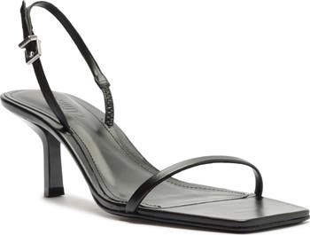 An angular square toe and sculptural heel bring sharp angles to a Brazilian-made leather sandal featuring a minimalist profile and secured with an adjustable slingback strap.