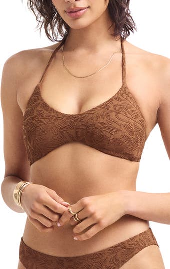 Tie straps lend an adjustable fit to this textured bikini top that's perfect for your next pool day.