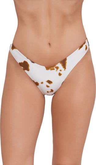 These printed bikini bottoms are cut in a classic hipster silhouette with a scooped out front that subtly modernizes the look.