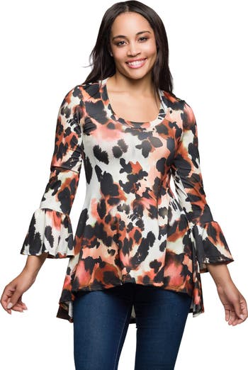 Scoop Neck Bell Sleeve Tunic Top Animal Print