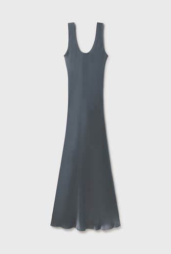 Silk Laundry Scoop Neck Dress in silk satin, tailored with a bias cut for a regular fit. Sleeveless with a scoop neckline, flowing into an ankle-length hem.