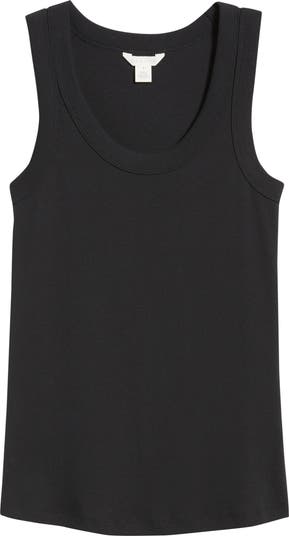 Narrow straps enhance the streamlined look of a scoop-neck tank top made from softly ribbed cotton.