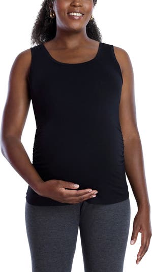 Motherhood's scoop neck maternity tank top is a must-have sleeveless tank for effortless everyday wear. It features flattering side ruching that accommodates your growing bump throughout pregnancy and beyond, ensuring a flattering fit in every trimester. The scoop neck enhances the neckline while providing comfortable coverage, making it perfect for layering or wearing on its own.