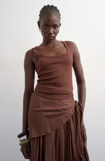 Topshop Scoop Neck Stretch Cotton Rib Tank, Main, color, Brown