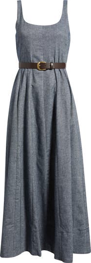 A smocked back gently cinches the bodice of this lightweight cotton-linen tank dress cut for a classic fit-and-flare silhouette with a billowing A-line skirt.