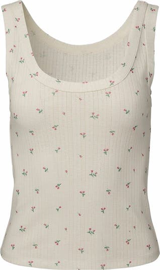 This fitted tank comes in our airy pointelle knit fabric with a scooped neckline, front and back. Scoop neckline Fitted body 85% Polyester 15% Rayon Machine wash with like colors. Do not bleach. Tumble dry low. Iron cool. Do not dry clean.