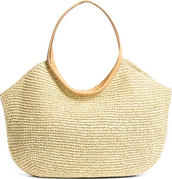 Bring a touch of beachy style to your look with this woven raffia tote with a spacious interior perfect for storing your daily essentials.