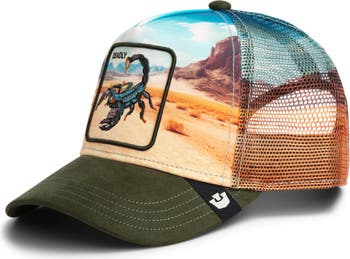 Bring legendary style to your everyday look in this classic trucker hat styled with an embroidered patch showcasing a scorpion.