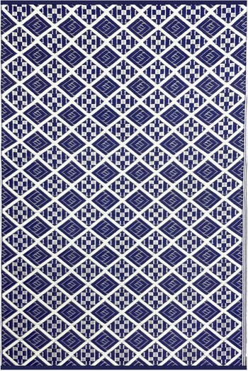 - - 100% recycled polypropylene - UV / fade resistant - water repellent / mold resistant - stain resistant - indoor & outdoor use - debris and sand brushes right off - was with a hose or mop and light detergent