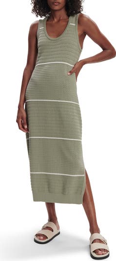 Dainty pointelle stitches pepper a sleeveless cotton sweater-dress fashioned in a figure-skimming silhouette that's eased by airy side vents.