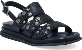 Antiqued hardware detail the straps of this Italian-leather sandal handcrafted with a contoured, cushioned footbed.