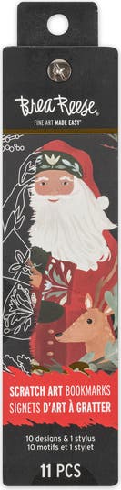 BREA REESE: SCRATCH ART: BOOKMARK KIT - WOODLAND HOLIDAY - Immerse yourself in the rustic beauty of the season with the Brea Reese Scratch Art Bookmark Kit in Woodland Holiday. This nature-inspired set includes 10 bookmarks featuring whimsical woodland creatures and festive designs, waiting to be revealed through metallic accents and vibrant hidden colors. The enchanting, earthy patterns evoke the cozy charm of the winter wilderness, making these bookmarks perfect for adding a handmade touch to your holiday celebrations. With a dual-sided stylus included, you can create detailed, one-of-a-kind bookmarks that are ideal for gift-giving or personal use. Whether you’re enjoying a quiet evening crafting or creating on the go, this kit provides a relaxing way to express your creativity and celebrate the season’s natural beauty. Bookmark kit INCLUDES 10 designs and 1 stylus.