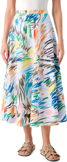 A playful crayon-scribbled print lends a sense of joie-de-vivre to this cotton poplin midi skirt done in a classic A-line silhouette with a signature ring zipper pull.