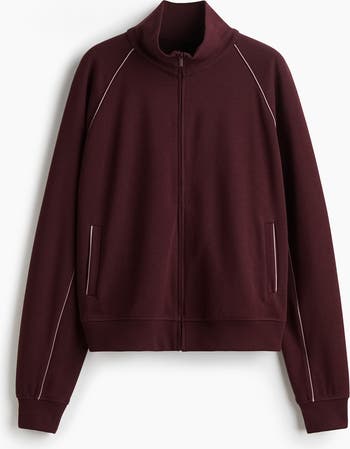 Oversized track jacket in scuba knit fabric with a stand collar and a concealed zip down the front. Long raglan sleeves with accent-colour piping and welt side pockets. Ribbing at the cuffs and hem.
