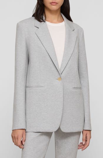 The label's signature sharp tailoring keeps the look of this relaxed-fit blazer polished, while the soft Italian scuba fabric with a mélange finish adds to the balance of refinement and ease.