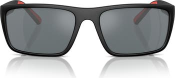 Sporty stripes race across the mirrored lenses and sleek temples of rectangular sunglasses finished with the iconic Ferrari logo.