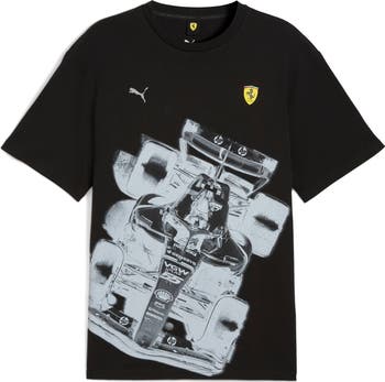 Bring the intensity of the racetrack into your everyday wardrobe with the all-cotton graphic T-shirt. Featuring a bold, high-definition print of the Ferrari car, this T-shirt is designed for motorsport enthusiasts who want to showcase their passion in style.