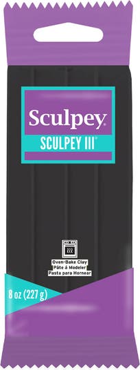 SCULPEY III: BLACK - 8OZ - Sculpey III is a great introduction to oven-bake clay. It is soft, easy to use and comes in a variety of vibrant colors! Great for beginners, general crafters and kid/parent projects due to its soft, easy to use texture. Stays soft until baked - Does not air dry. Remains soft and flexible until it is baked in your home oven. Extra clay can be stored and reused - won't dry out! Great for a variety of projects such as: jewelry, DIY home décor, mixed media and more! SAFE AND NON-TOXIC! Because our one-of-a-kind formula will only harden when you bake it in your home oven, you can keep shaping and reshaping your clay until you get your creations just right. And your extra Sculpey III won't harden, so it will be ready next time you want to craft. BAKING INSTRUCTIONS: Bake at 275 °F (130 °C) for 15 minutes per 1/4 in (6 mm) thickness. Do not microwave. Do not exceed the above temperature or recommended baking time. While crafting - Please make sure your work area is covered and you are not working on an unprotected surface. We recommend working on the Sculpey Tools Oven-Safe Work Mat, wax paper, metal baking sheet, or disposable foil. Uncured clay may damage unprotected furniture or finished surfaces. Be sure to cover your crafting area appropriately. WHILE CRAFTING: Please make sure your work area is covered and you are not working on an unprotected surface. We recommend working on the Sculpey Tools Oven-Safe Work Mat, wax paper, metal baking sheet, or disposable foil. Uncured clay may damage unprotected furniture or finished surfaces. Be sure to cover your crafting area appropriately. STORAGE INFORMATION: Our products contain a date code that indicates the date of production, but not “sell by date”. Oven-bake clays, when stored correctly in a cool, dry place, below 77°F and out of direct sunlight, have an expected shelf life of a few years.