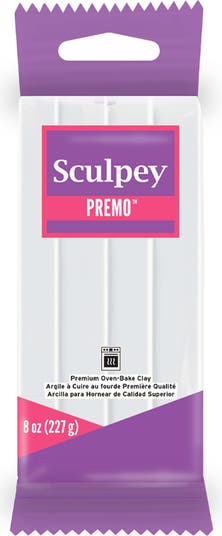 SCULPEY PREMO: WHITE - 8OZ - Premo is perfect for the more experienced clayer or artist! Premo is soft enough to blend easily but firm enough to hold fine detail making it perfect for specialized techniques. Flexible, very strong and durable making it the perfect choice for advanced techniques like caning, mokumegane and mica shift. Best brand for mica shift due to the high concentration of mica particles. Stays soft until baked - Does not air dry. Remains soft until it is baked in your home oven. Extra clay can be stored and reused - won't dry out! Great for a variety of projects such as: jewelry, DIY home décor, mixed media and more! SAFE AND NON-TOXIC! CRAFT IDEAS FOR SCULPEY PREMO POLYMER CLAY: A creative way to stretch your imagination, Sculpey Premo is perfect for making home decor, holiday ornaments, jewelry and functional items you use every day. After conditioning, Sculpey Premo clays are firm enough to hold fine detail yet soft enough to blend easily. HOW TO SOFTEN: When Sculpey Premo becomes too firm it can be softened using various techniques: Using a clay conditioning machine. Mixing it with clay softener. Combining the clay with softer clay. Using a food processor. Smashing the clay inside a plastic bag using a rolling pin. BAKING INSTRUCTIONS: Bake at 275 °F (130 °C) for 15 minutes per 1/4 in (6 mm) thickness. Do not microwave. Do not exceed the above temperature or recommended baking time. While crafting - Please make sure your work area is covered and you are not working on an unprotected surface. We recommend working on the Sculpey Tools Oven-Safe Work Mat, wax paper, metal baking sheet, or disposable foil. Uncured clay may damage unprotected furniture or finished surfaces. Be sure to cover your crafting area appropriately. WHILE CRAFTING: Please make sure your work area is covered and you are not working on an unprotected surface. We recommend working on the Sculpey Tools Oven-Safe Work Mat, wax paper, metal baking sheet, or disposable foil.