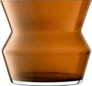 An angular sculpted design adds to the elegance of this hand-blown piece that serves as a candle lantern or vase for low bouquets, as you prefer.