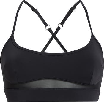Moisture-wicking and strategically compressive, this stretch-enhanced sports bra keeps you feeling breezy with its mesh inset in the front.