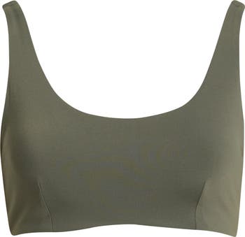 Vertical darts create shape for this reversible sports bra made with a curved hem.