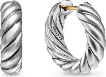 Crafted from polished sterling silver, these twisty, artfully sculpted hoop earrings will lend just-right gleam to your looks.